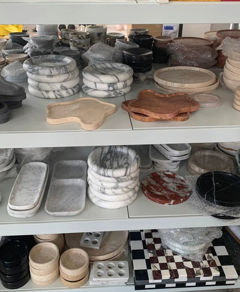 The Capri Marble Coffee Table is a sculptural statement of modern artistry and timeless refinement. Handcrafted from the world’s most sought-after natural stones - including Arabescato marble, Calacatta Viola, Carrara White marble, Rosso Alicante, Nero Marquina, Indian Green, and Beige Travertine - it embodies the perfect balance between form and function.
